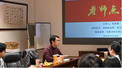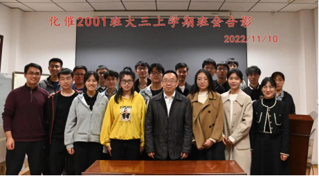 为增强班级共建向上班风的凝聚力和向心力,化催2001班于11月10日在化工实验楼C220召开“总结过去,展望未来”主题班会。化工学院党委书记郭新闻教授、班主任张光辉副教授、辅导员杨娟老师、化催2001班全体同学参加本次会议。