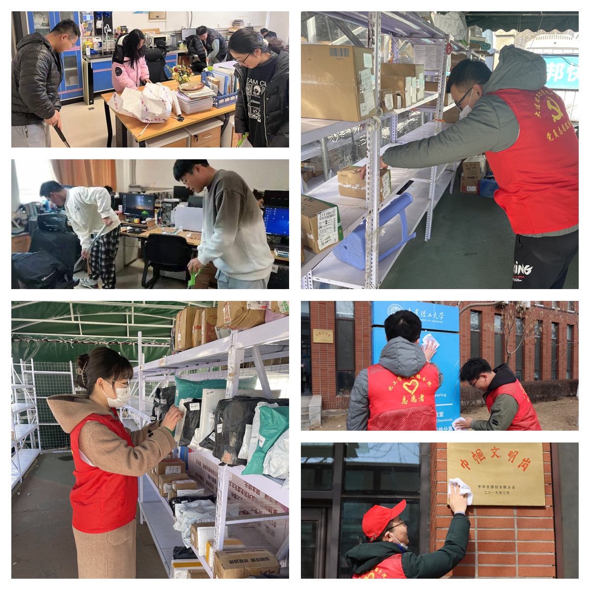 让雷锋精神转化为实实在在的行动,弘扬时代新风,传递正能量。各支部结合“我为群众办实事”开展系列志愿服务活动。有机化学博硕师生纵向党支部自发组成“志愿小队”,党员志愿者化身“快递小哥”灵活穿梭在各个快递点为同学们取好快递并配送快件,志愿者们在奉献的同时,缓解了科研带来的压力,收获了愉悦和满足。化学工程博师生纵向党支部开展了卫生清扫等志愿工作,将雷锋精神与实际实践相结合,把崇高的理想信念和道德品质追求与日常的工作生活紧密结合。化工原理硕学生党支部组织党员讲述功勋故事、清扫功勋教师像,在追忆办学初心中重温建校历史、厚植家国情怀,引导支部党员始终传承“由党创办、为党服务”的大工红色基因,用实际行动传播志愿服务理念。盘锦分院本师生纵向党支部与分院团委志工部联合举办了主题为“雷锋精神!你我动手,美化校园活动”的义务清扫活动,对楼宇、彩虹长廊、足球场及排球场等地点进行了卫生清扫,为美化校园环境作出贡献。