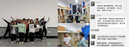 在学风上,王华老师经常向任课老师了解学生情况,及时发现问题,根据上一学期班级学风数据,面向特殊同学进行点对点督促,为每个学生设计不同目标要求;在班级建设中,每月参与班团活动,帮助同学们树立正确的人生观和价值观,让学生在完成学业之时,更要明白作为新时代的青年应该肩负的历史使命和历史责任。