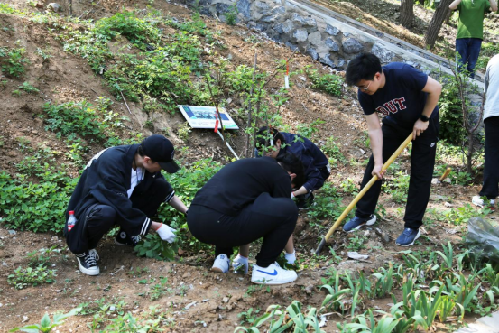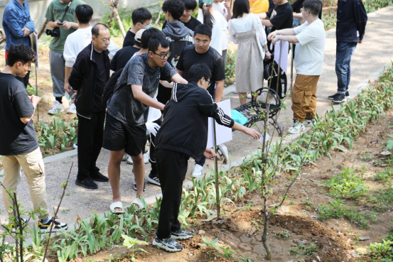 5月18日,春暖花开,微风习习,化工学院联合后勤处于在厚义楼东侧桃李园开展2019级优秀毕业班“感恩有你培植希望”主题实践。