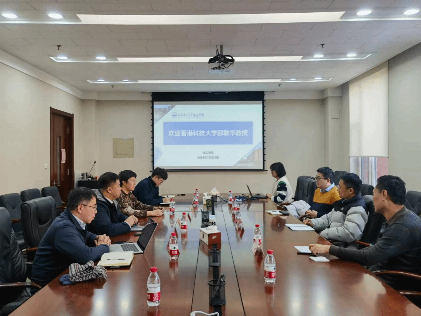 当日下午,邵敏华教授与我院相关主责领导和教师代表召开了两院学生交流培养座谈会。副院长李琳教授介绍了学院本科生培养情况,强调了学院在提升学生综合素质和实践能力方面所作出的努力;副院长姜晓滨教授和研究生办公室主任周峰老师侧重介绍了学院硕博研究生培养情况,特别是研究生在科研创新方面所取得的突出成绩;院长助理孙冰冰教授和化工机械与安全系王维教授分别表达了对学院国际班及学院国际化工作发展的期望与愿景;副院长刘毅教授详细介绍了学院近期在国际化工作方面的成果与经验。随后,邵敏华教授分享了香港科技大学与我院在学生联合培养方面的工作思路。在讨论环节,双方各自就学生遴选规则、交流时段、资助方式、培养模式等细则进行了深入探讨。经友好协商,双方达成了一致目标,今后在学生联合培养与交流方面进一步加强沟通合作。