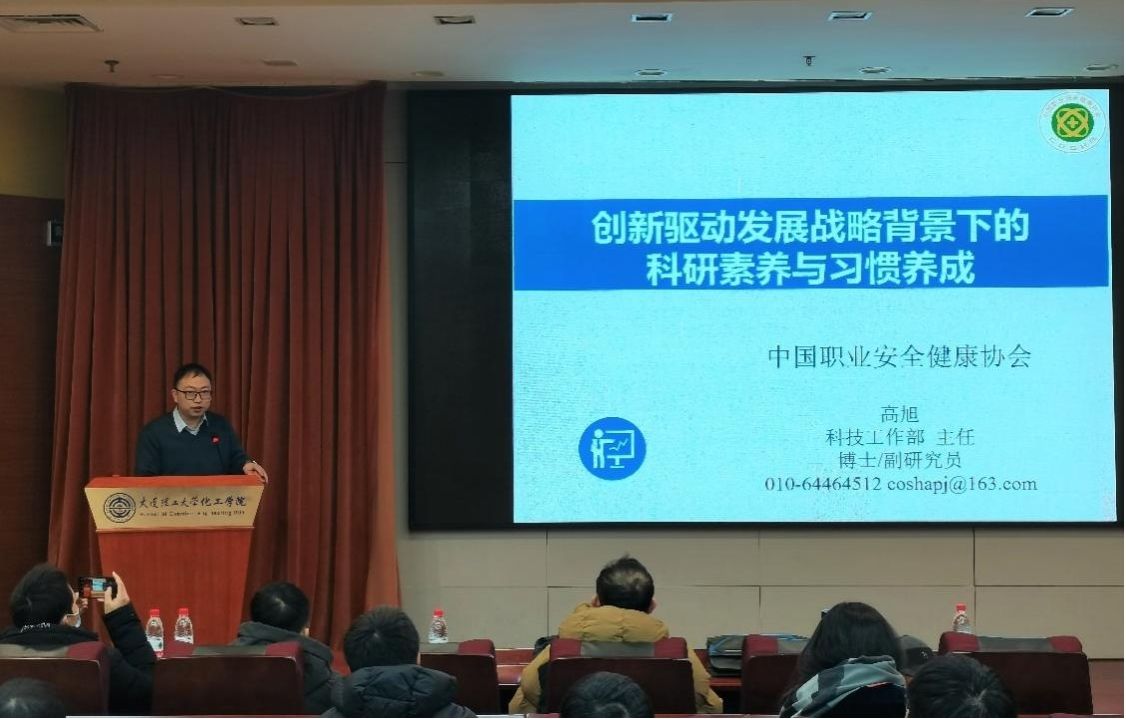 近日,大连理工大学化工机械与安全系教工党支部联合大连理工大学化工安全科普教育基地(全国科普教育基地)举办“创新育人”主题科普讲座活动,邀请中国职业安全健康协会(下称“协会”)科技工作部高旭主任为师生做了题为“创新驱动发展战略背景下的科研素养与习惯养成”的报告。