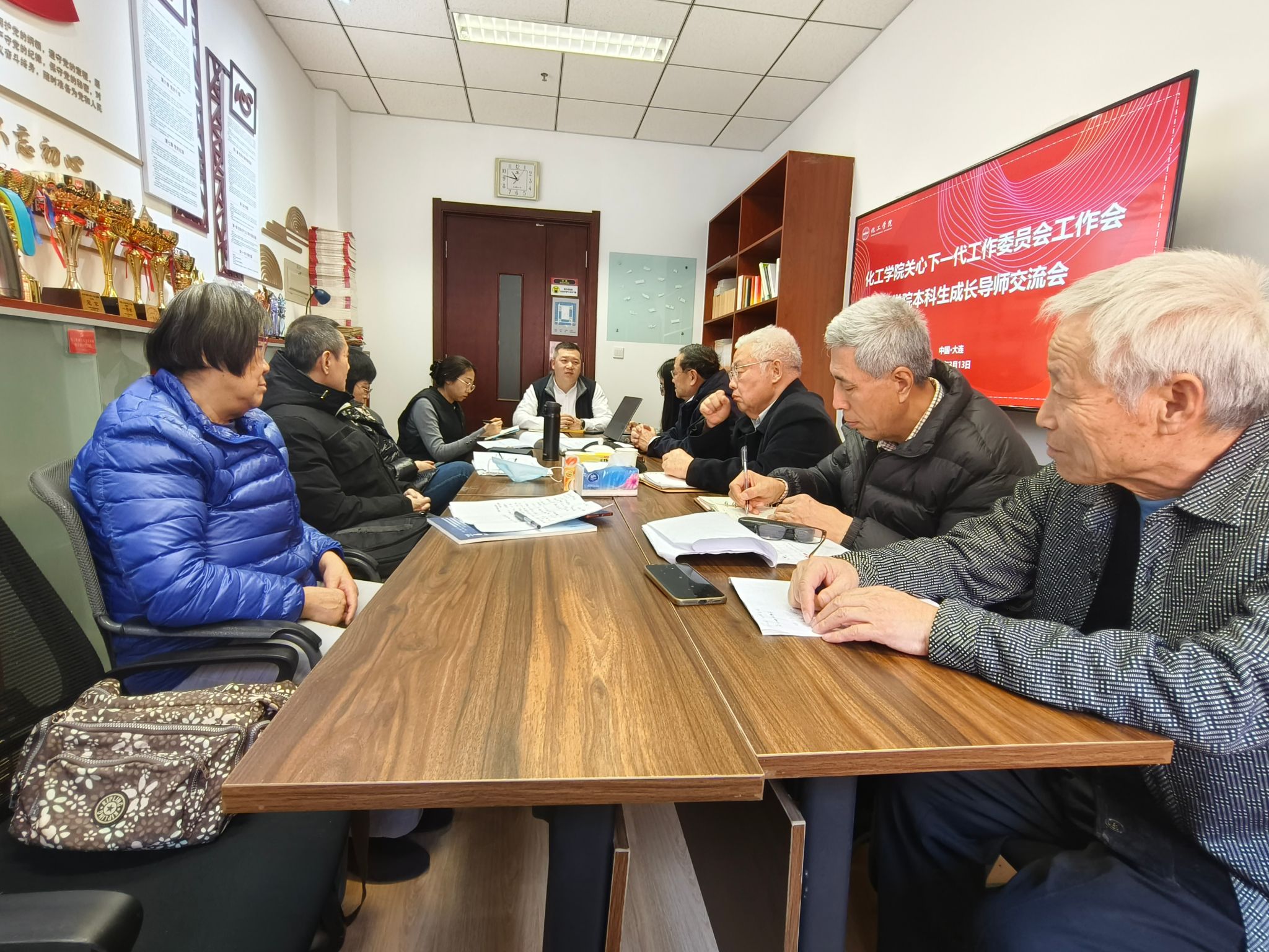 近年来,学院依托关工委本科生成长导师团队,发挥“五老”优势,持续面向学院学生开展学业指导、发展规划、心理咨询等工作。上学期,7位成长导师每日轮班,重点对年级高、欠课多、毕业难的57名学生进行帮扶,57名学生共清除欠课150余门400余学分,成效显著。学院学风建设工作负责人王溪汇报学生学业进步情况,成长导师殷德宏、高占先、赵秋娜、于志家、董泉玉、周颖、张守臣等分别分享工作经验与心得。
