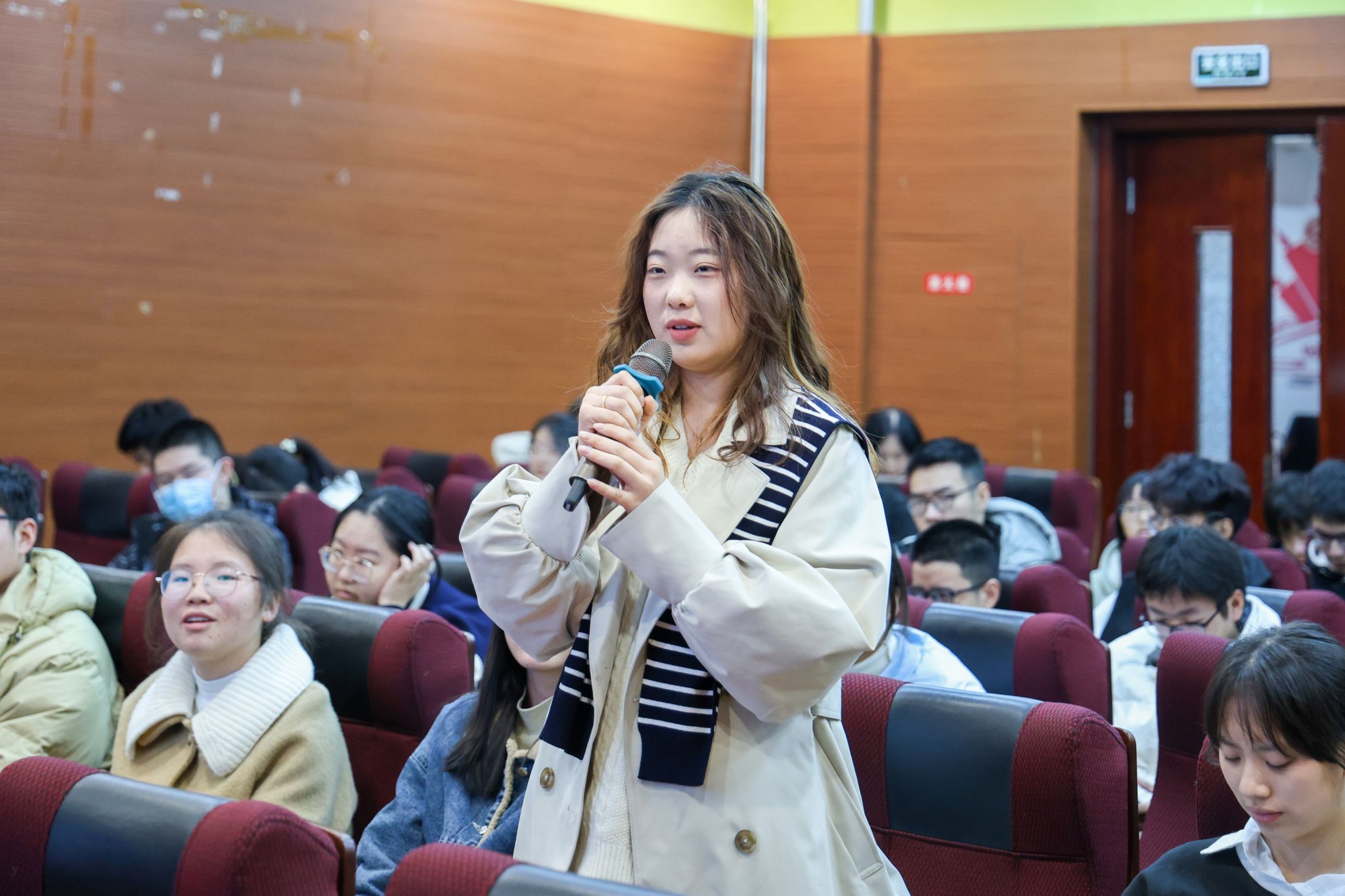 分享结束后,在场观众踊跃提问,师姐结合专注投入、科研产出、创业启动等同学们关注话题展开交流。