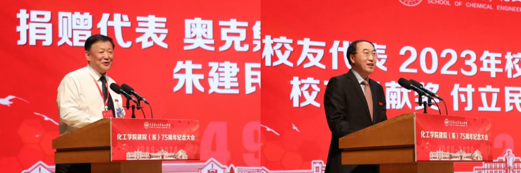 奥克集团股份公司董事长、1985级校友朱建民师兄,2023年校友年度人物“校友贡献奖”、1987级校友付立民师兄作为校友代表发言。朱建民师兄分享了扎根化工孜孜求学、带领来自大工的技术团队白手起家的创业历程,他深深感念母校的栽培和恩师的教导,希望与母校携手并肩、共同谱写东北全面振兴新篇章。付立民师兄讲述了考入大工求学、在化工学习成长的心路历程,他感恩母校母院的成长平台与多年培养,期待为化工领域和学院事业发展贡献更多校友力量。