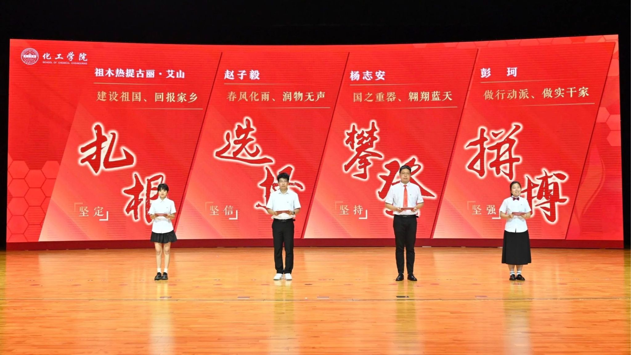 大连理工大学优秀学生标兵彭珂,大连理工大学就业榜样祖木热提古丽·艾山,本科毕业生代表赵子毅,研究生毕业生代表杨志安共同向学院献词,汇报青春选择,展现青年担当,表达对母校的不舍和感激之情。