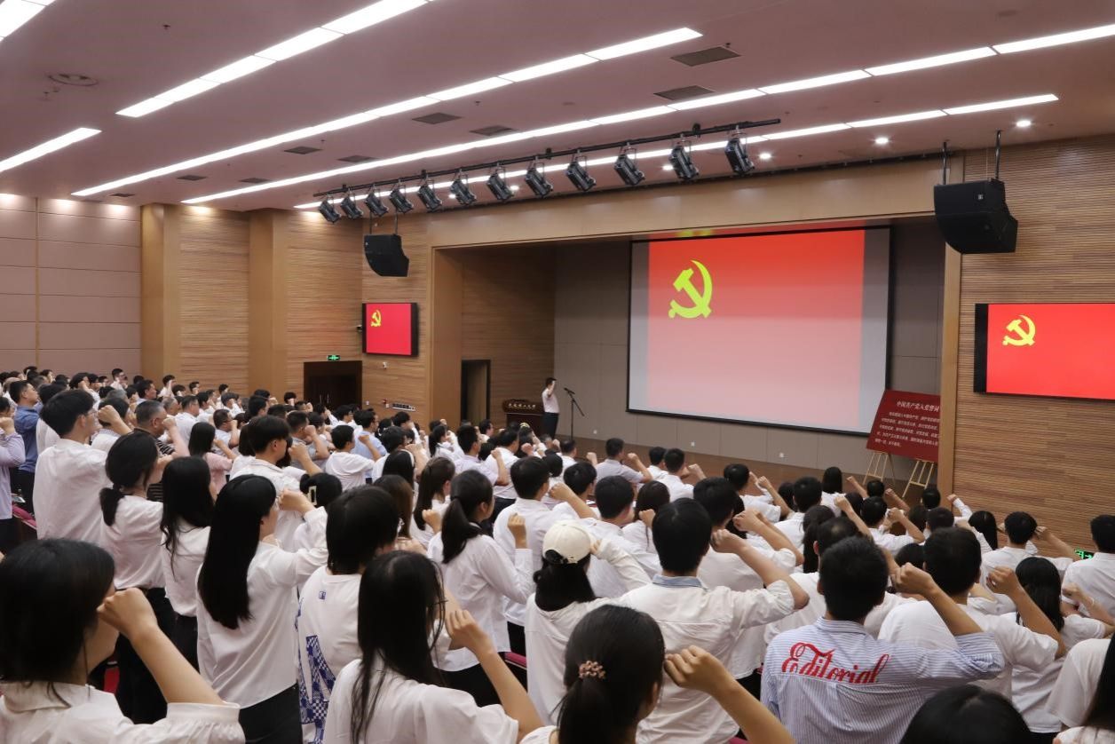 张文珍带领新党员进行入党宣誓,全体党员重温入党誓词。