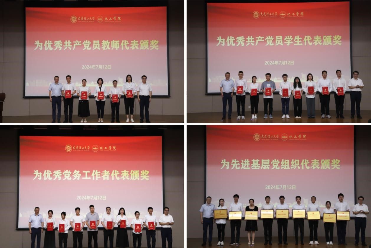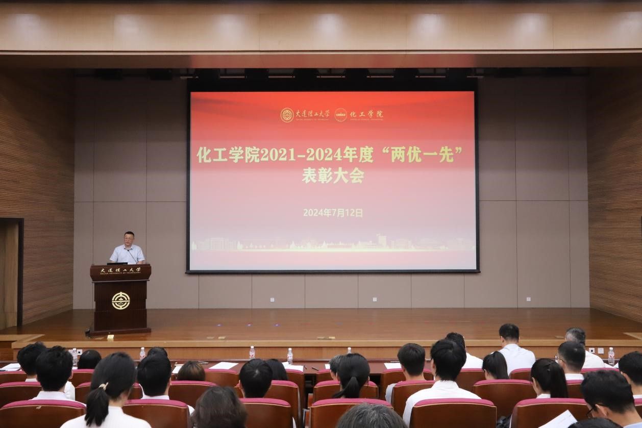 为庆祝中国共产党成立103周年,7月12日,大连理工大学化工学院2021-2024年度“两优一先”表彰大会在伯川图书馆报告厅召开,对学院2021-2024年度涌现出的优秀共产党员、优秀党务工作者和先进基层党组织进行表彰。学院领导班子成员、教工及学生党员代表共计200余人参加会议。会议由学院党委副书记刘阅主持。