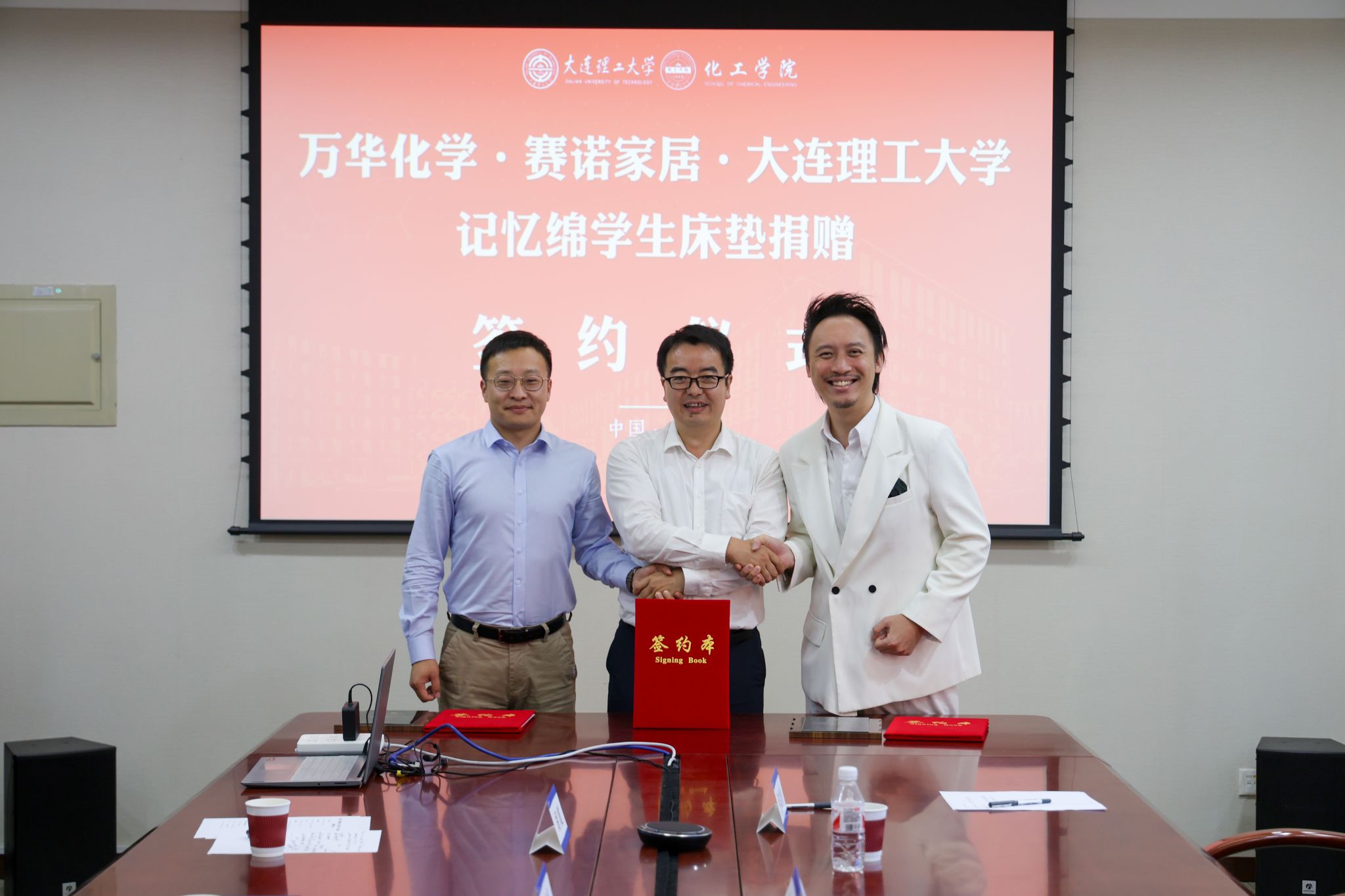 9月2日下午,化工学院在知化楼D508会议室举办万华化学·赛诺家居·大连理工大学 记忆绵 学生床垫捐赠仪式。万华化学集团股份有限公司市场部总经理刘明松、万华北京家居行业销售经理战金辉、人力资源部招聘经理白朔、市场部床垫行业推广负责人王亮亮,赛诺家居用品(深圳)有限公司总经理林仕超、大客户总监冯海兵,化工学院党委书记张文珍、副书记兼副院长王晓光、副院长李琳出席会议;大连理工大学学生服务中心本科生资助办公室主任胡霞,化工学院学生工作办公室主任尚可、研究生工作办公室主任周峰及学生代表参会。