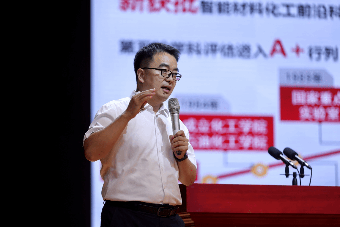 为激励同学们选化工、学化工、爱化工,成为“全面发展、分类卓越、多元成才”的时代新人,化工学院党委书记张文珍教授为新生同学们带来“书记第一课”。他指出,化工学院近年来在历史沿革中传承红色基因,在科学研究中不断创新发展,在学科建设中收获丰硕成果,在知识殿堂中蕴育独特文化,希望同学们在化工学院怀抱梦想、脚踏实地、敢想敢为、善作善成,同学校一起力争上游,再创辉煌。