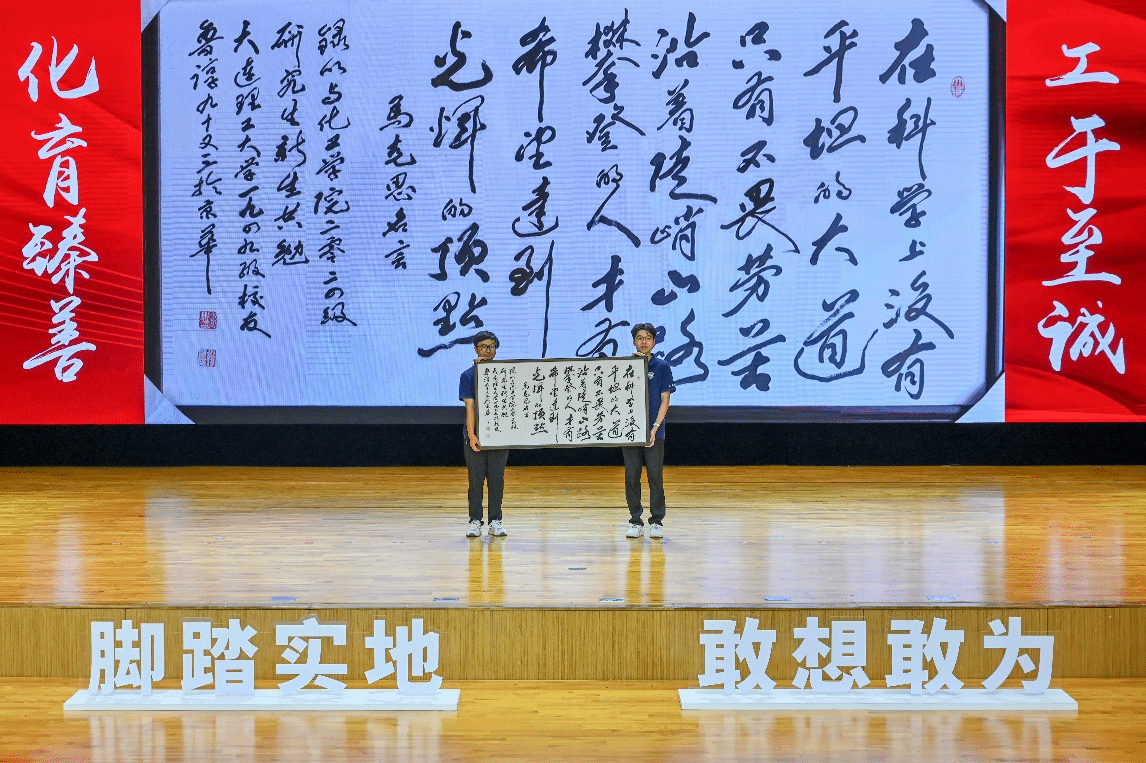 学院首届校友,原《光明日报》副总编辑鲁谆师兄特别赠送书法作品寄语新生同学们,希望同学们在科学研究的道路上不畏艰险,奋勇攀登世界科技巅峰。