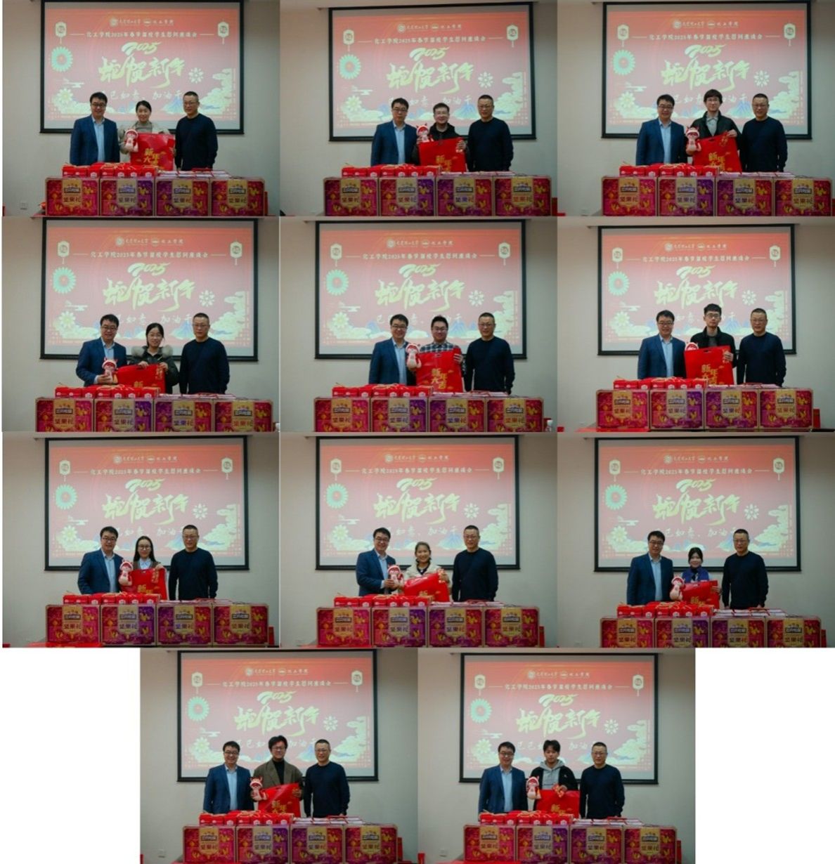 座谈环节后,学院为春节留校学生发放爱心礼包。一份份爱心礼包似火炬般明亮且温暖,照亮了寒冷的夜,传递了化工的情。