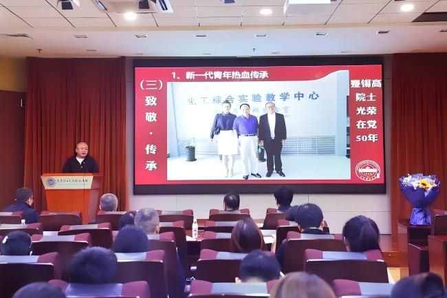 为传承党的光荣传统,弘扬老党员坚守初心、无私奉献的崇高精神,进一步增强党员的荣誉感、归属感和使命感,2025年10月14日,高分子材料系教工党支部与本硕博学生党支部联合举办蹇锡高院士“光荣在党50年”峥嵘岁月分享主题党日活动。化工学院党委书记张文珍教授、高分子材料系教工与本硕博学生各党支部全体党员、教师与学生代表共同聆听蹇锡高院士讲述与党同行的峥嵘岁月。通过重温初心、回望奋斗、接力传承三个环节,感受一位老党员、老科学家半个世纪的忠诚与担当。活动由化工学院党委委员、高分子材料系教工党支部书记乔文强教授主持。