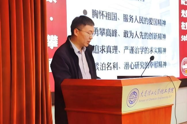 进入“求索·攀登”环节,纪录片《弘扬科学家精神,传承留学报国传统——选择》生动展现了蹇锡高院士的科研选择,其坚守深刻体现了一代共产党人的理想信念和家国情怀。蹇锡高院士以“料要成材,材要成器,器要好用,用为大用”为纲,结合自身矢志科研报国的经历,深情地分享了五十年来听党话、跟党走的决心与实践,并勉励青年师生把握时代机遇,不忘初心,为实现中华民族伟大复兴的中国梦贡献力量。化工学院党委书记张文珍教授致辞,向蹇锡高院士表达崇高敬意。他强调,蹇锡高院士的科研精神与党性修养是激励师生前进的强大动力,全院师生应以蹇院士为榜样,将崇高精神内化于心、外化于行,在科研报国的征程上奋力攀登,为发展新质生产力贡献大工化工力量。