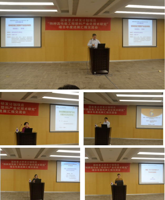 会议由化工学院院长助理张文珍教授主持开幕,大连理工大学科学技术研究院赵美森副院长致欢迎辞,项目负责人张守海教授首先向与会专家汇报了近一年来项目的执行情况,总体来说,项目的各项技术指标已经达到或超过了预期。其中,所开发的聚芳醚玻璃化转变温度超过250℃、高强度聚酰亚胺纤维的拉伸强度超过4GPa、HDT≥300℃液晶聚合物已实现稳定生产、管材用长碳链聚酰胺专用树脂拉伸强度达36.2 MPa、PA13T封装材料的性能与国外同类产品相当。