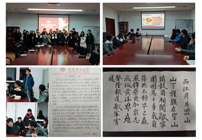 11月28日,开展了以“弘扬井冈山精神,坚定理想信念”为主题的井冈山红色培训学习心得分享会,让支部党员和积极分子深入了解关于革命先烈的光辉事迹与艰苦岁月,深刻领悟井冈山精神的精髓。