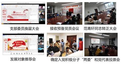 丰富主题党日活动,增强党组织凝聚力。疫情期间“停课不停学”是支部严格落实“三会一课”制度、丰富主题党日活动的真实写照。如2月12日开展的线上“勇做防疫先锋”主题党日活动;3月4日开展的以“分享‘战疫’体会”为切入点学习疫情防控相关文件及会议精神的主题党日活动;4月2日,以“弘扬雷锋精神”为主题为支部党员讲专题党课;5月21日,召开党员大会共同学习习近平总书记在“五四”青年节期间的讲话精神等;6月4日,支部以观看《两会1+1》节目为主要形式共同学习两会精神等。