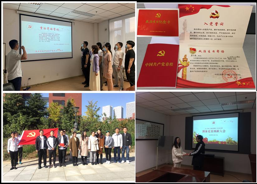 为保持主题党日的庄重感,同时为了坚定党员同志的理想信念、强化党员身份意识,支部分别在建党99周年和支部预备党员纳新之际,先后两次组织支部党员重温入党誓词。同时,按学院集中安排,支部在功勋雕像前学习了侯毓汾教授的先进事迹,由党支部书记为新发展党员佩戴党员徽章、老党员赠送党章和政治生日纪念卡。