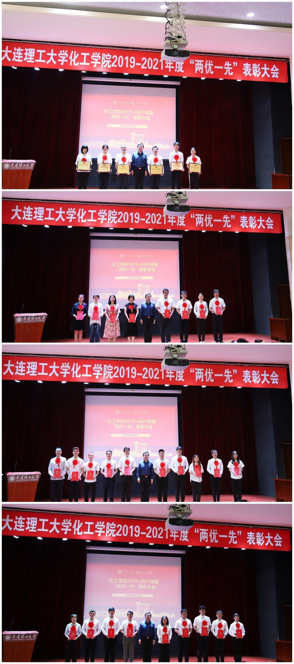 党委书记郭新闻同志宣读了化工学院2019-2021年度“两优一先” 表彰名单,并为受表彰的先进基层党组织和优秀党员代表颁奖并合影留念。