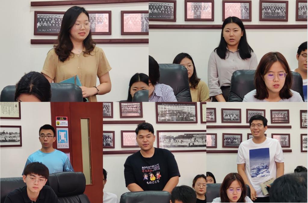 2021年离任的辅导员有石一慈、刘辰玥、刘鸿鑫、丁俊莹、黄代堋和郭江涛6位同志,其中3位就业,3位继续研究生学业。会上,6位老师分别介绍了自己的离任去向,也发表离任感言,表达了对学院党委和同仁的感激、对学生工作的珍惜和对学生的不舍。