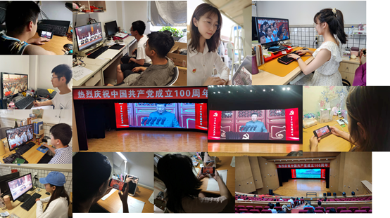 庆祝中国共产党成立100周年大会7月1日上午8时在北京天安门广场隆重举行。中共中央总书记、国家主席、中央军委主席习近平发表重要讲话。化工学院师生第一时间通过多种途径、采取多种方式观看庆祝大会,习近平总书记在大会上的重要讲话掷地有声、振奋人心,在师生中引起热烈反响和强烈共鸣。师生们纷纷表示要更加紧密地团结在以习近平同志为核心的党中央周围,始终将服务国家作为化工人的最高追求,坚持“四个面向”,立足服务东北全面振兴全方位振兴、助力辽宁经济社会发展,主动对接国家战略目标、战略任务,努力成为基础研究主力军和重大科技突破的生力军。