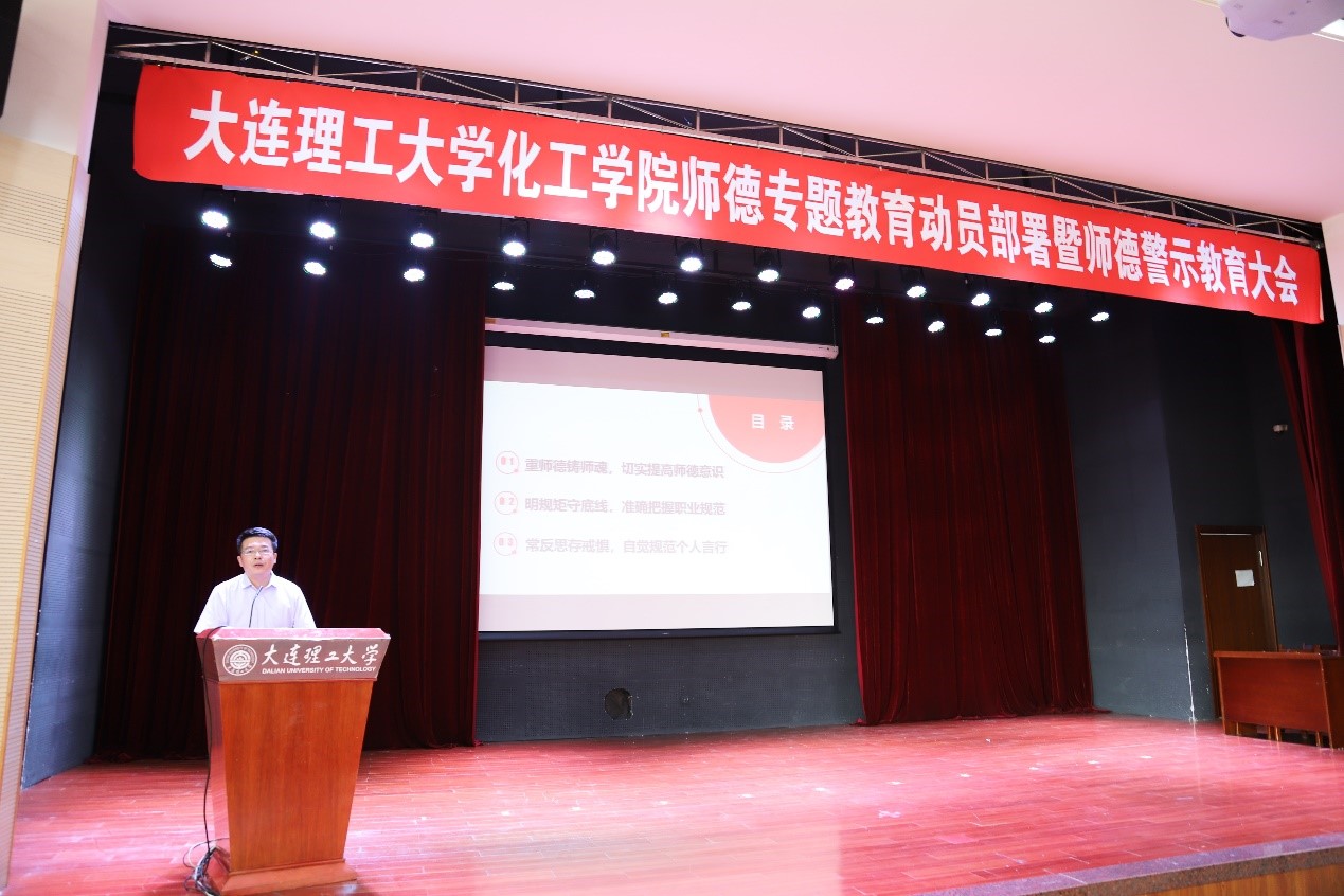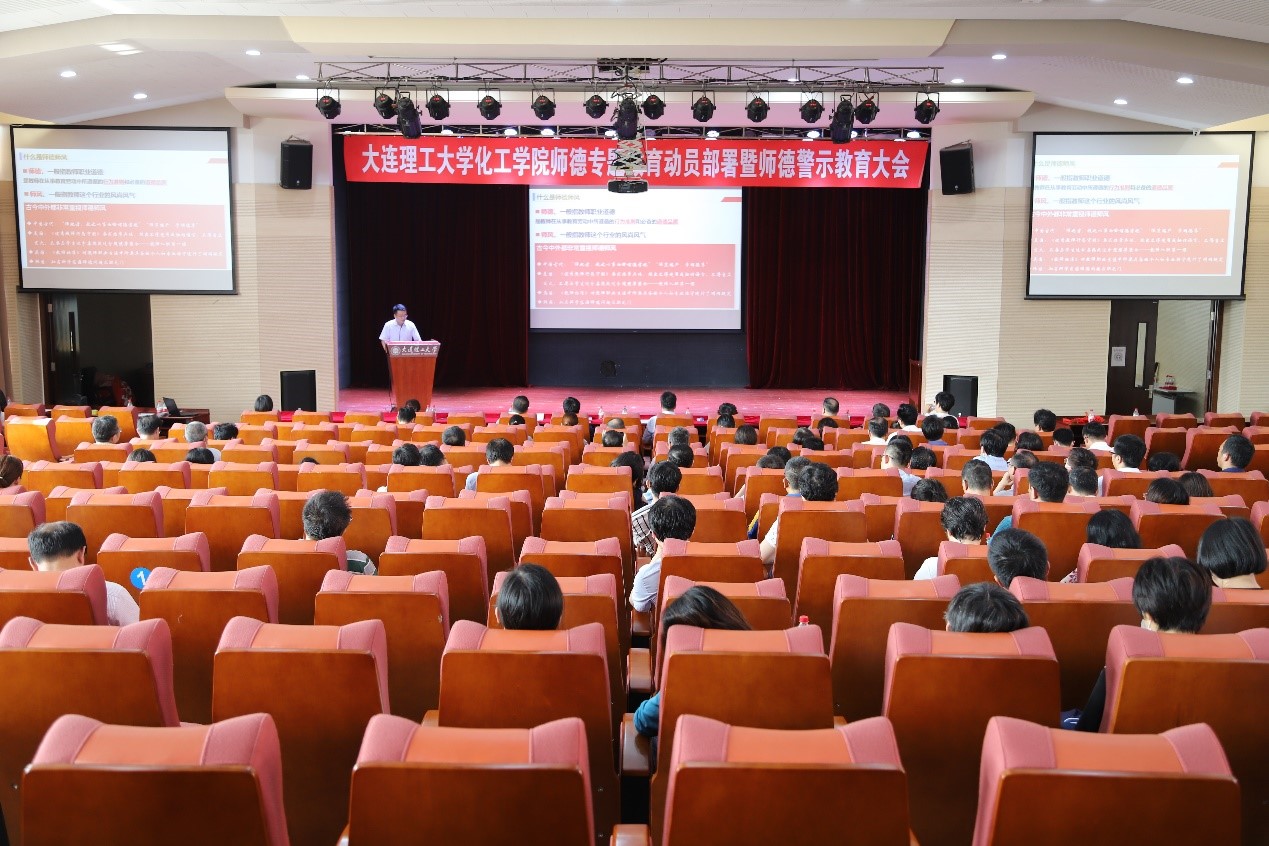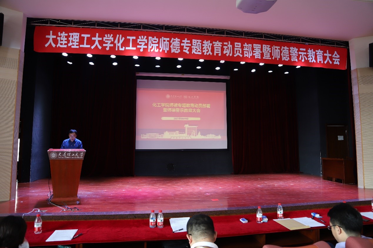 6月30日下午,化工学院在西部校区百川报告厅召开师德专题教育动员部署暨师德警示教育大会,学院领导班子成员、学院教职工近200人参加会议。盘锦分院在分会场参会。会议由学院党委副书记兼副院长、纪委书记刘阅主持。