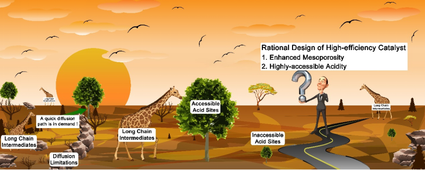 高性能加氢异构催化剂设计策略:(1)丰富介孔结构;(2)促进酸性位点接近性