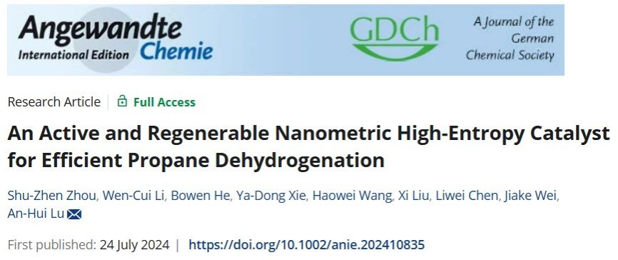 最近,我校化工学院陆安慧教授团队借鉴高熵氧化物和合金的优良特性,以活性金属铂(Pt)为研究对象,采用高熵策略分散和锚定铂原子,设计出一种具有高活性、高稳定性且易再生SiO2负载型纳米(MnCoCuZnPt)高熵PDH催化剂。这一研究成果为催化材料的开发提供了新的思路,并展示了高熵策略在催化剂设计中的潜力。相关成果以“An Active and Regenerable Nanometric High-Entropy Catalyst for Efficient Propane Dehydrogenation”为题发表在Angewandte Chemie International Edition期刊上。论文通讯作者是陆安慧教授,第一作者是周淑珍博士。