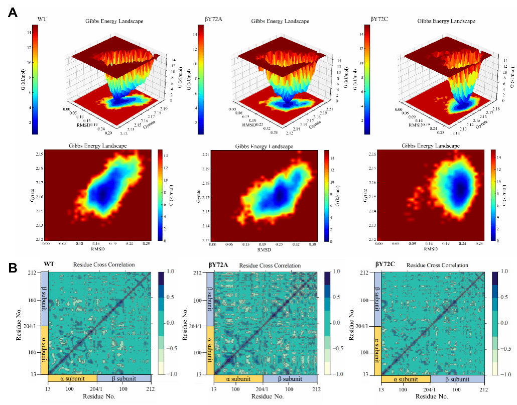图4 自由能景观(FEL)和动态互相关矩阵(DCCM)分析