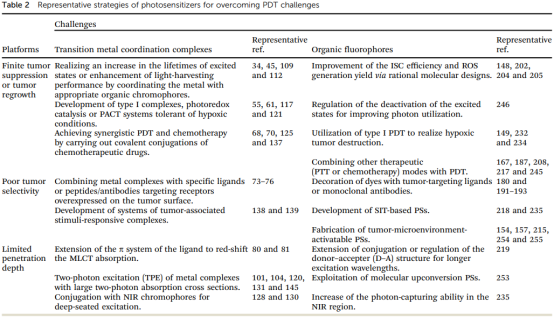 综述系统地介绍了为克服上述问题所设计并制造的光敏剂的最新进展,包括肿瘤微环境耐受型光敏剂、肿瘤选择性光敏剂和深层组织穿透型光敏剂。