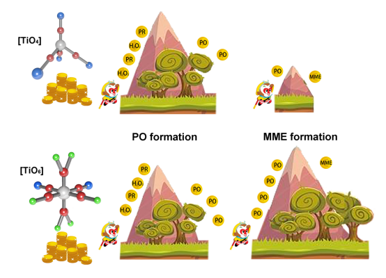 此项工作从动力学角度构建了丙烯环氧化反应的机理,对于TS-1上不同钛物种的活性进行了量化分析,首次给出了四配位钛和六配位钛对于丙烯环氧化主副反应的本征动力学性能,为未来TS-1催化剂的设计合成提供了新的理论依据。