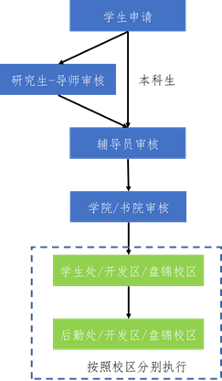 后勤部门审批环节需待学生交还钥匙并验房确认后,由后勤部门进行审批。