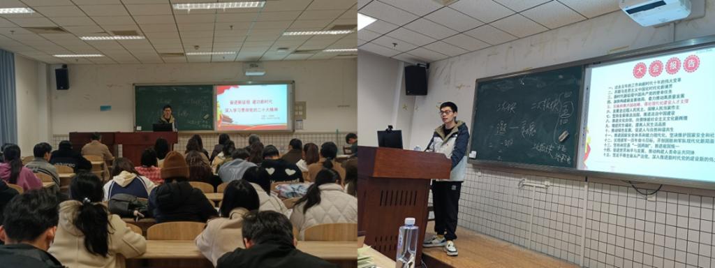 闫营营同志从深刻领会党的二十大主题,如何学习贯彻党的二十大精神及如何走好科研路三个方面进行了讲述。希望我们研究生能够刻苦学习科研知识,提高创新能力,积极发挥党员的先锋引领作用,为建设卓越大工、魅力大工、幸福大工贡献青春力量。