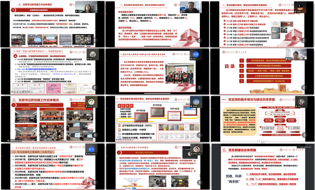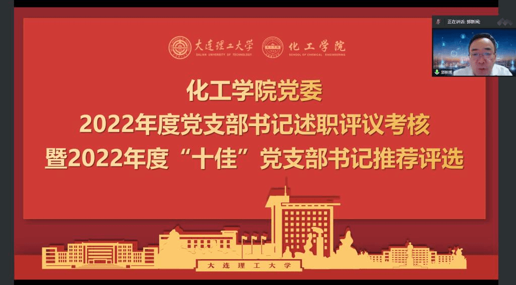 12月26日下午,化工学院党委在线上召开了2022年度党支部书记抓党建述职评议会暨2022年度“十佳”党支部书记推荐评选,学院党委书记郭新闻教授,党委委员、党总支负责人、全体党支部书记以及盘锦分院党总支参加会议。会议由化工学院党委副书记兼纪委书记刘阅主持。
