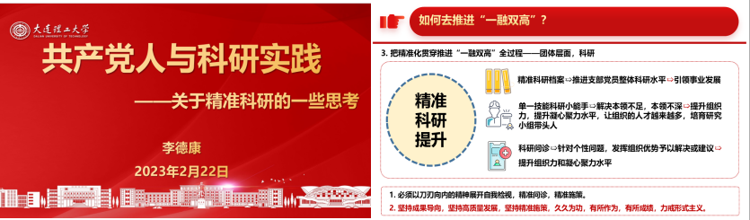 接着,黄浩从科研和党支部建设两个方面出发,为我们系统讲解了如何制定合理的文献阅读计划,从合理计划中落实科研工作;如何确定研究思路以及如何采集数据等科研必备技能,从交流经验到探讨学习;如何平衡好支部建设与科研之间的关系。