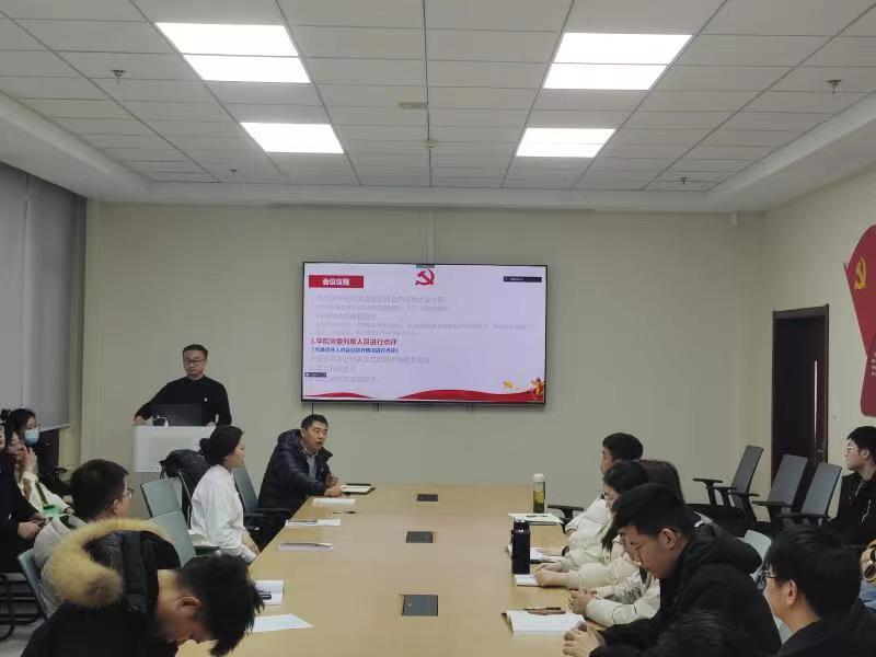 支部书记朱飞代表党支部班子做表态发言,在2023年,支部将继续以习近平新时代中国特色社会主义思想为指导,深入贯彻落实党的二十大精神和学校第十四次党代会精神,深度融合“党建+科研”,坚持以高质量党建引领科研高质量发展,扎实推进“一融双高”建设专项行动,以“三会一课”为依托,开展以不同形式和主题深入学习党的二十大等重要精神,不断地发挥党员模范带头作用和党支部战斗堡垒作用。