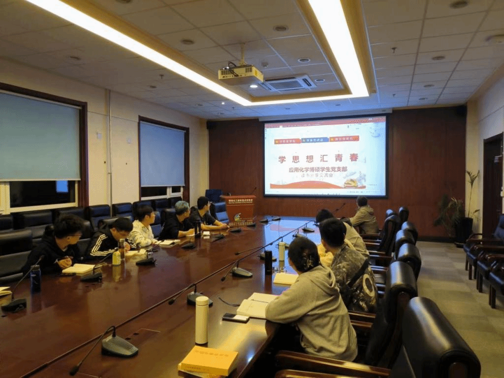 书籍是人类进步的阶梯。为进一步加强支部建设,引导党员同志与书为友,充实文化底蕴,提高自身综合素质,增强工作能力,2023年10月21日晚6点,应用化学博硕学生党支部在知顺楼f213召开主题为“学思想,汇青春”的读书分享交流会,支部全体成员参加,会议由支部书记付翔宇主持。