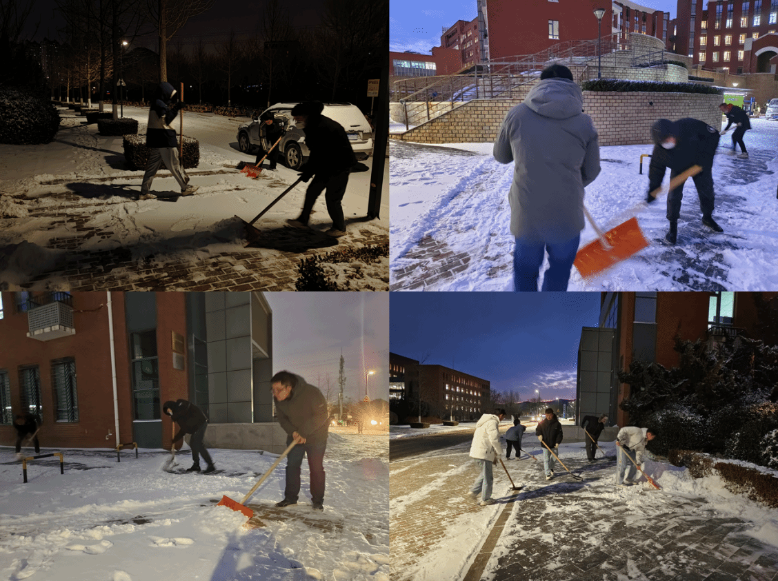 活动于12月11日下午启动,党支部全体成员迅速响应,用实际行动践行党员先锋模范的责任担当。在寒冷的环境中,大家团结协作,有序地清理道路积雪,手持铁锹、扫帚等工具,清理路上的积雪,经过近两个小时的努力,路面上的积雪被一扫而空,道路状况得到了很大改善,为过往的老师、同学开辟出一条干净又安全的出行通道。