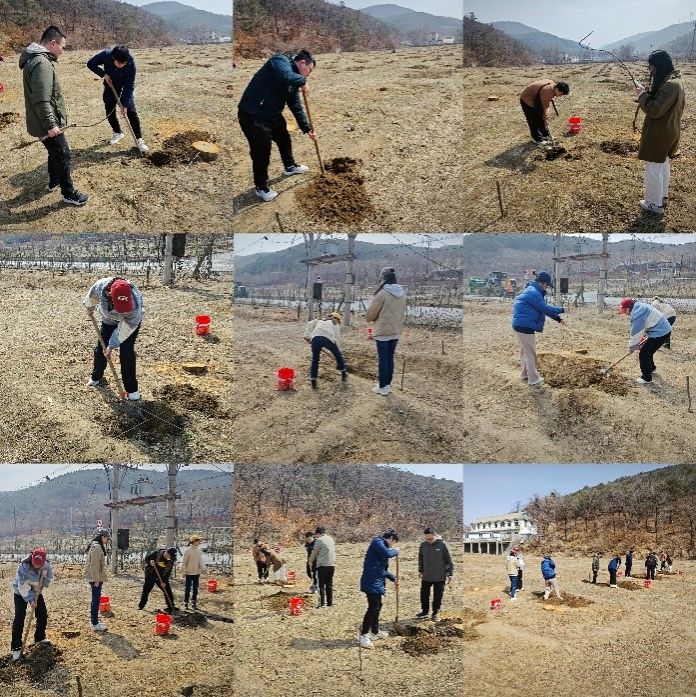 时值春天播种季节,支部也组织党员同志在刘家村开展植树活动。植树前,张老师对树苗情况、果园规划布局进行简要介绍,也对林间经济、旧树改造等项目进行讲解。挥锹铲土、挖坑运树、固树培土、提水浇灌,现场气氛热烈,呈现出繁忙有序的劳动景象。同志们充分见证了科技助农、经济兴农成果,“沉浸式”感受乡村振兴农业发展新风貌。