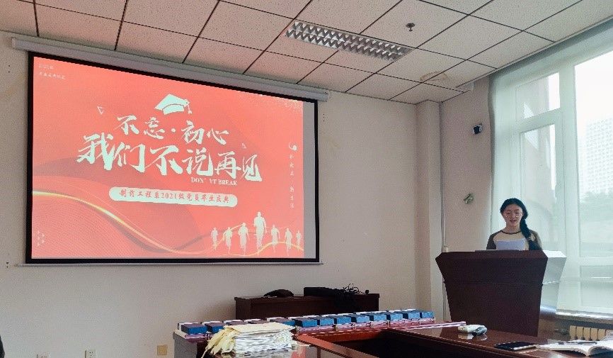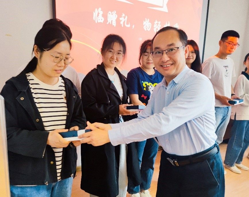接着,周宇涵老师向毕业生党员赠送了毕业礼物并进行赠言,希望毕业生党员们坚持自我革新,发扬自身优势,改进自身不足,担负起时代赋予的责任。