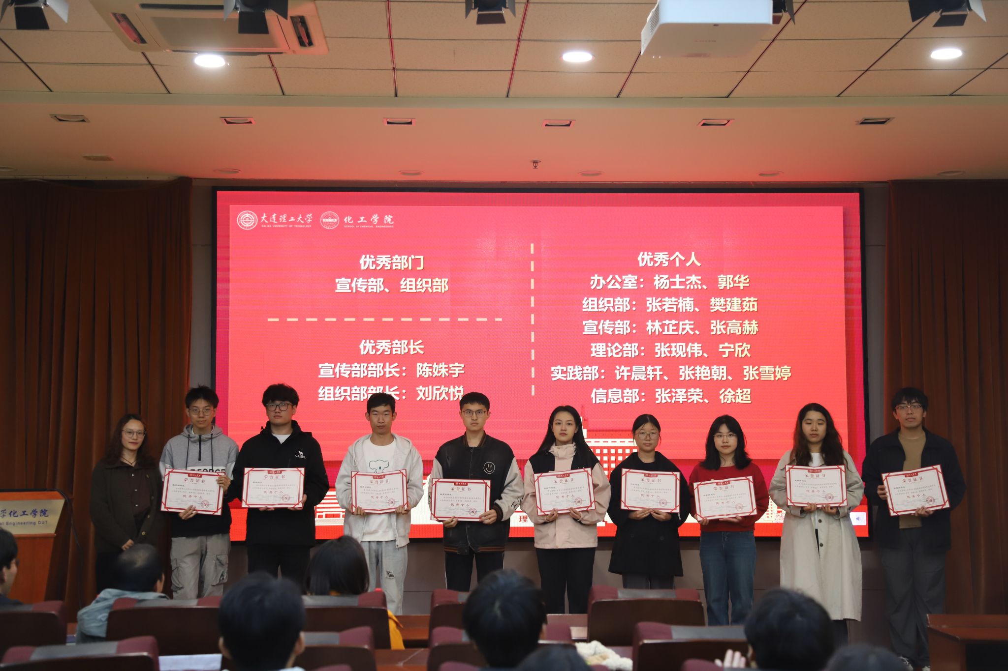 2024年10月18日下午,大连理工大学化工学院党委分党校学生工作部述职暨聘任表彰大会在知化楼D102召开。出席会议的有化工学院党委组织员赵佳明老师,组织干事尹一珺老师,组织干事王玉健老师,宣传干事刘星老师及第五届、第六届学生工作部全体成员参加会议。会议由分党校学生工作部何相明同学主持。