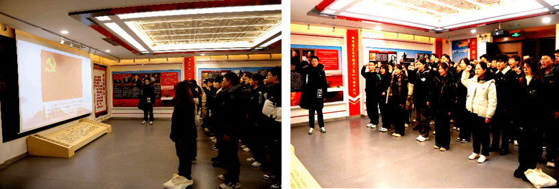 随后,新党员们面向党旗进行庄严的入党宣誓。他们举起右拳,庄严宣誓:“我志愿加入中国共产党,拥护党的纲领……” 铿锵誓言在展厅内久久回响,彰显了他们对党的忠诚与信仰,展示出他们作为共产党员的自豪和担当。