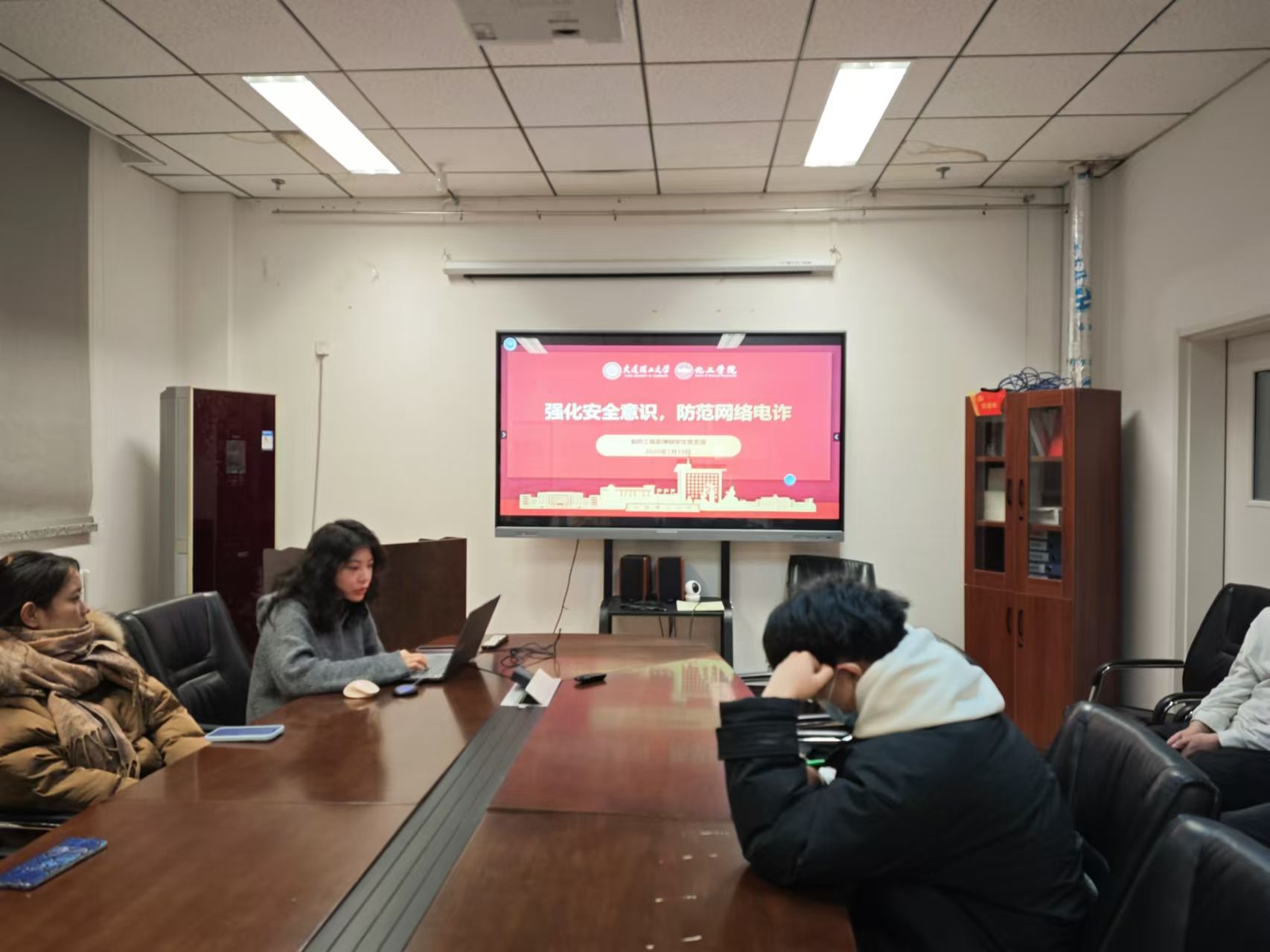 2025年1月15日18:00,化工学院制药工程系博硕学生党支部在G101会议室召开了主题为“强化安全意识,防范网络电诈”的党日活动。本次活动旨在提高支部成员对网络电信诈骗的防范意识,确保大家的生命财产安全不受侵害。