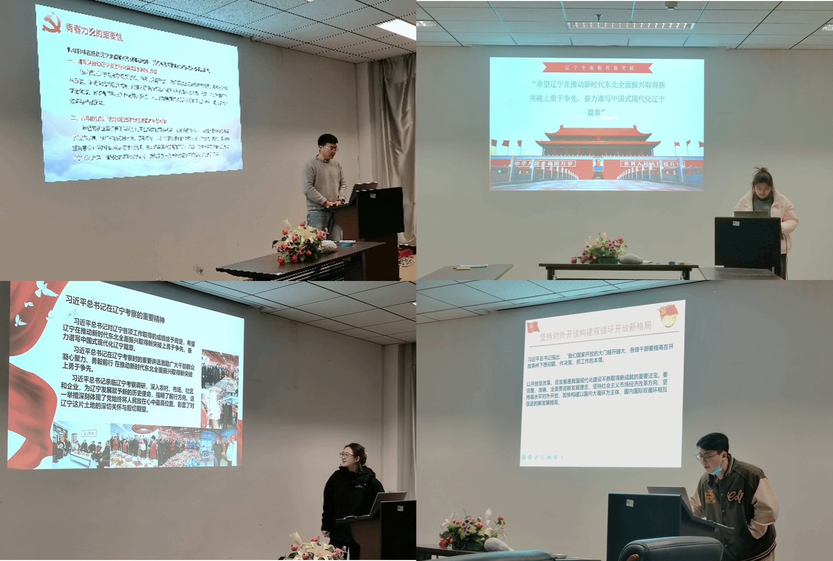 染料与光学信号材料博硕第一学生党支部入党积极分子张函同志充分分析了习近平总书记辽宁考察时的重要讲话的核心要义,深入讨论谱写现代化辽宁新篇章的实施路径。同时对照个人现状,向与会同志分享其思想转变过程和行动方案,动员与会同志将个人奋斗融入辽宁振兴中去。