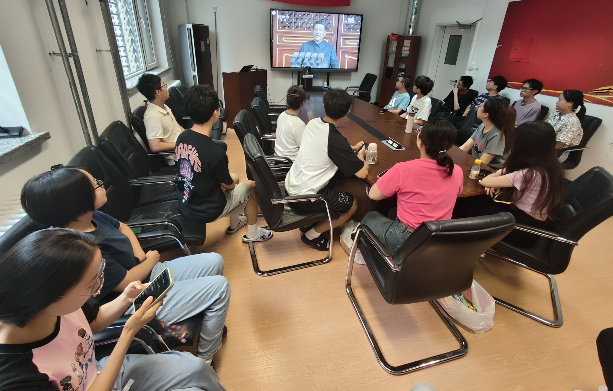 2025年9月3日九点,制药工程系博硕第二学生党支部党员同志们准时守候在屏幕前,怀着无比激动的心情观看纪念中国人民抗日战争暨世界反法西斯战争胜利80周年阅兵式,这场阅兵气势恢宏,党员同志们深受震撼。卢俊雅同志表示:“当军队将士们整齐划一地走过令我不禁为之惊叹。他们高举着鲜艳的军旗,在太阳的照耀下闪烁着光芒,展示着我国国防力量的强大。他们的步伐整齐有力,威严而庄重,彰显出军人的坚定和自信。他们骄傲的面容和昂首阔步的姿态让我深感自豪。”