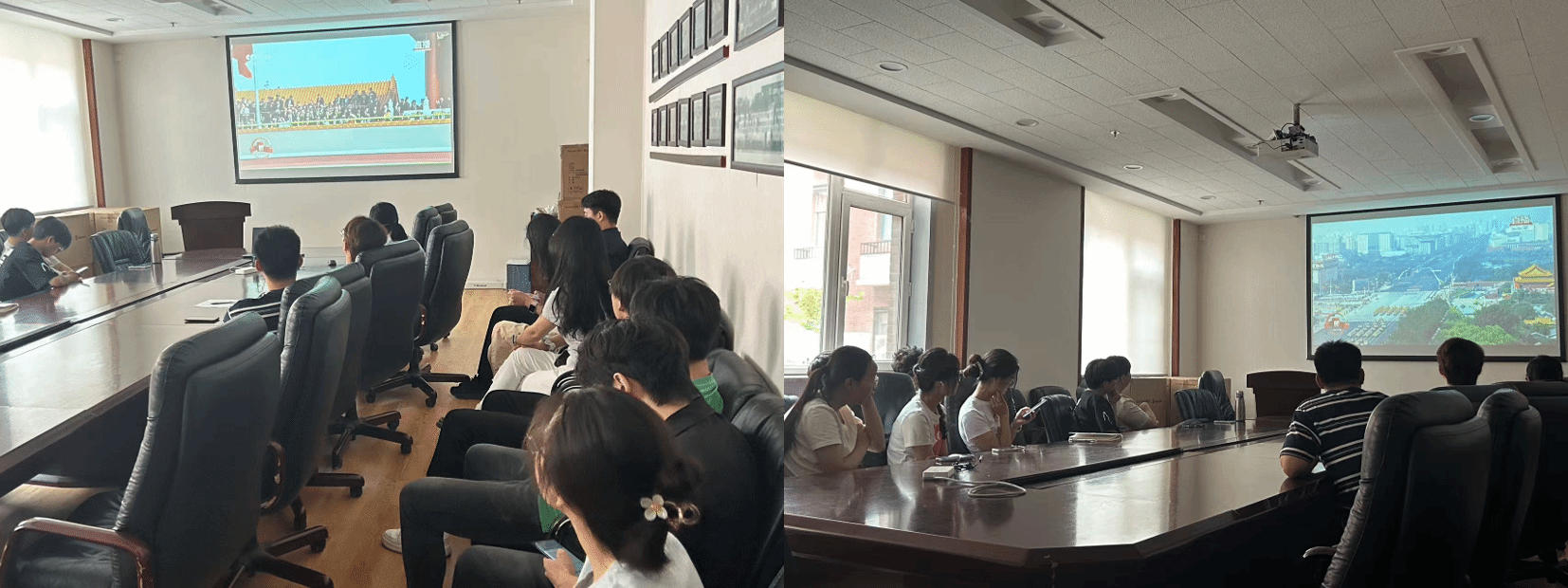 2025年9月3日是中国人民抗日战争暨世界反法西斯战争胜利80周年纪念日,纪念中国人民抗日战争暨世界反法西斯战争胜利80周年大会在北京天安门广场隆重举行,为迎接全面推进中国式现代化进入新征程的首次阅兵,人民军队奋进建军百年的崭新亮相,化学工程系本硕师生纵向党支部、材料化工博硕第一学生党支部联合开展党日活动,于化工综合楼D206集中收看大会直播实况。