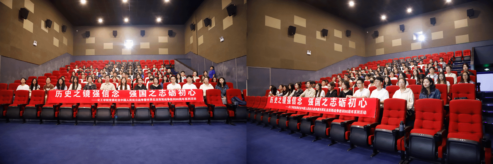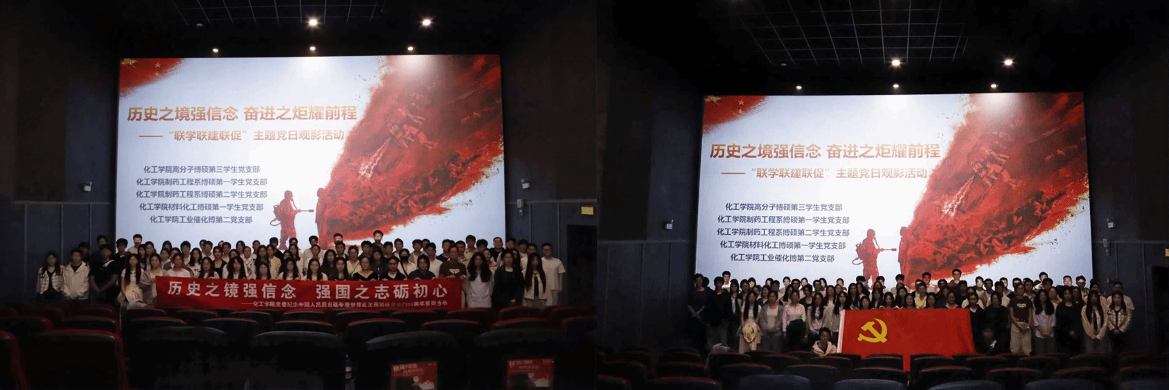 为深入开展爱国主义教育,巩固党史学习教育成果,激励广大党员铭记历史、珍视和平,学习并发扬革命先烈们不怕牺牲、勇于斗争的抗战精神,在纪念中国人民抗日战争暨世界反法西斯战争胜利80周年之际,化工学院高分子博硕第三学生党支部、制药工程系博硕第一学生党支部、制药工程系博硕第二学生党支部、材料化工系博硕第一学生党支部、工业催化系博硕第二党支部于2025年9月27日18时30分联合开展“历史之境强信念,奋进之炬耀前程”主题党日观影活动,共同观看历史题材影片《731》。各支部党员与入党积极分子共计70余人参与此次活动。