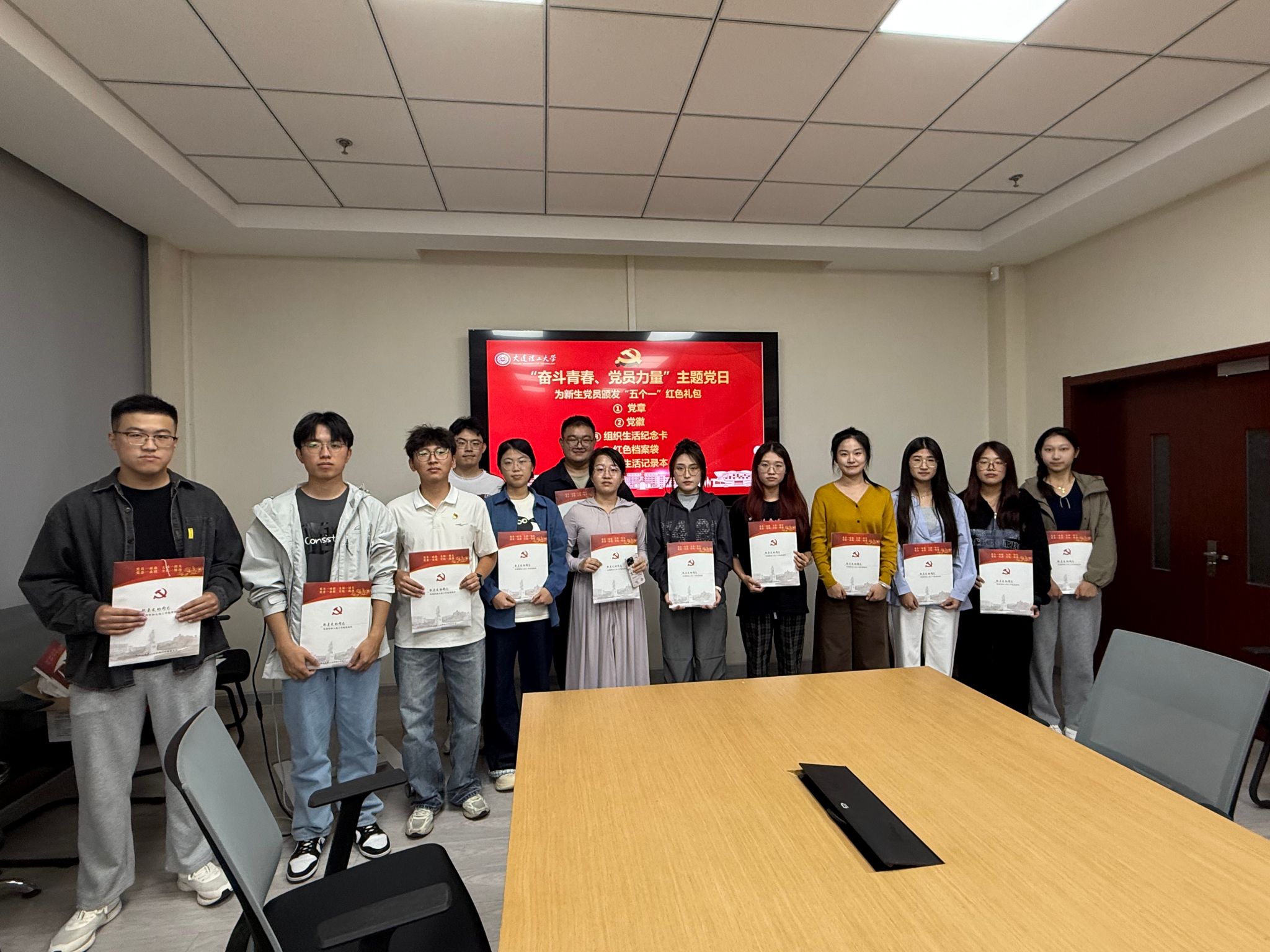 随后,党支部书记朱飞为新生成员颁发了“五个一”红色礼包,寄托了组织对新鲜血液的温暖关怀与厚望。党员们在温暖的氛围中深切感受到了党组织的关怀,进一步增强了集体荣誉感与归属感。