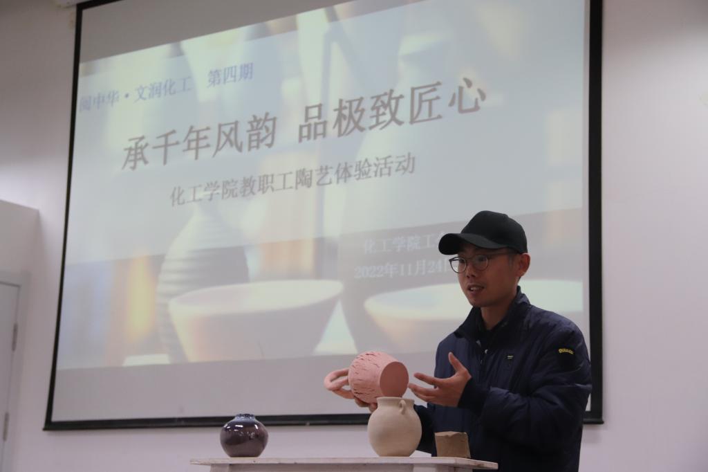 中国是陶瓷大国。中国陶瓷文化一直被视为体现中华民族文明成就和精神风采的重要方面。为了使学院教职工在娱乐中了解中国悠久的陶艺文化和千年流传的陶艺历史,11月24日,学院工会在文科实验中心组织了的“承千年风韵,品极致匠心”陶艺体验活动。活动邀请到人文学部文科实验中心于伟老师做主讲人,活动由学院工会副主席尹一珺主持。