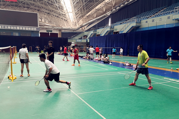 为了迎接第35个教师节,弘扬“庆祝新中国七十华诞,弘扬新时代尊师风尚”的教师节主题,化工学院工会于2019年09月08日上午在刘长春体育馆举办了“岛津杯”化工学院师生联合羽毛球比赛。本次比赛有来自学院的15名教工、34名学生报名参加。 赛前邀请岛津公司的陈有新经理和具本植老师做了简短的开幕式并宣读赛制后,就按组开始组织队员排兵布阵,投入比赛。